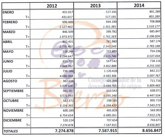 Concedidas 8.656.847 contraetiquetas, se ha producido un aumento del 14,80% en porcentaje con respecto al año anterior, correspondiendo a un valor absoluto de 1.068.932 contraetiquetas de calidad más concedidas con los distintivos de la Denominación de Origen Bierzo.
